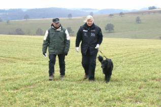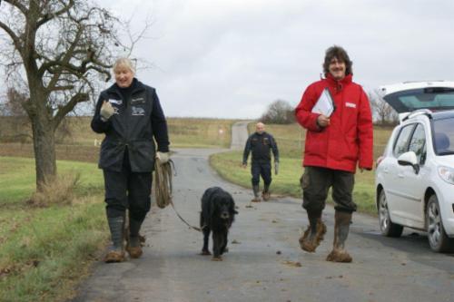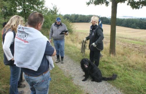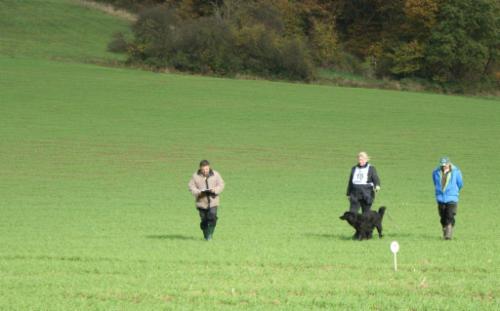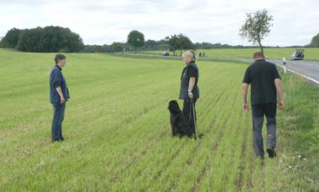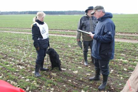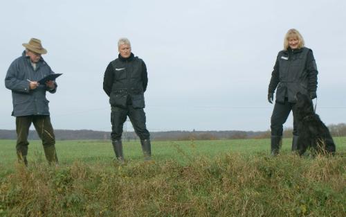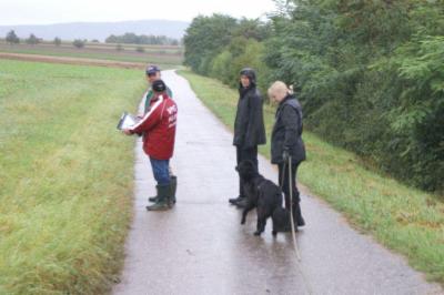 ...Richter, Fährtenleger und Prüfungsleiterin im Schlepptau...