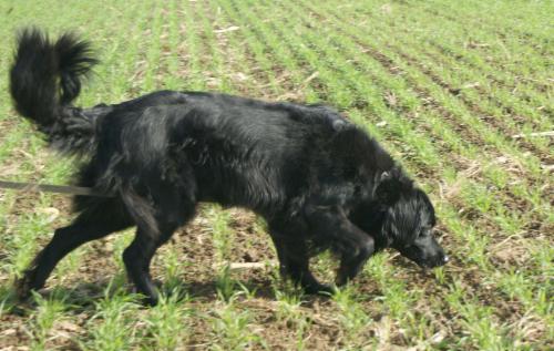 Der Acker war blank mit alten Maisstörzeln, vielen vielen Wild- und Wühlspuren und windig war`s auch noch...doch das machte uns keine Kopfzerbrechen...es waren die Wetterverhältnisse...: Dauerregen...und der hörte erst vorm Absuchen auf und es kam die Sonne raus...und wir wissen: unsere Prinzessin macht sich ihre Pfoten nur ungern schmutzig...