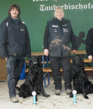 Unsere erst 2-jährige Azita startete vor ihrer Mutter Bolena in die Fährte und hat an diesem Tag ihr "Meisterstück" hingelegt. Mit nur geringfügigen Abzügen erhielt sie von LR Wilhelm Bittner stolze 97 Punkte: "...die Hündin zeigte durchweg ein intensives und sehr triebiges Suchverhalten..." und hatte sich somit den Tagessieg gesichert.