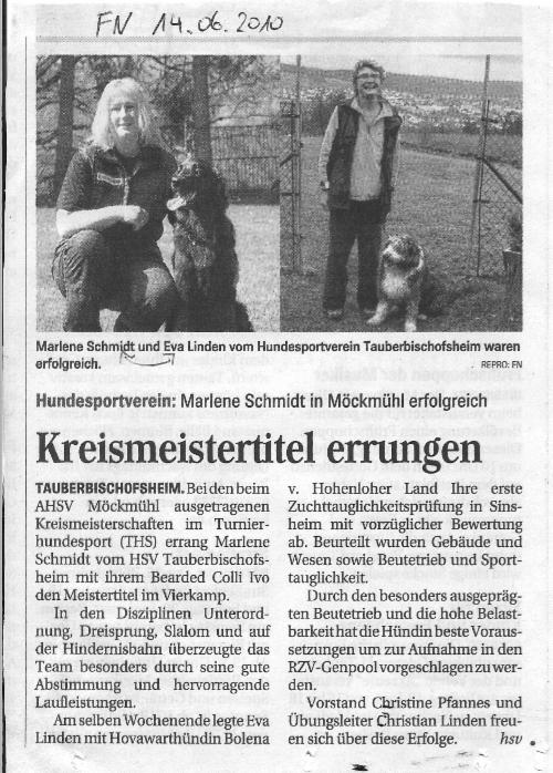 Leistungsprüfung RZV-H am 09.05.2010 beim HSV Sinsheim: