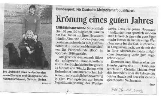 Leistungsprüfung des RZV-H am 30./31.10.2009 inJechtingen: