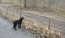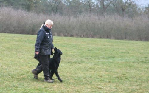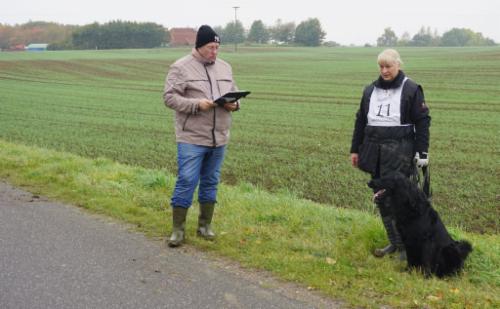 Dennoch ging Azita zügig in die Fährte, verwies die Gegenstände überzeugend, schnell und sauber und zeigte wie immer ihr triebiges Suchverhalten. Sie hat 2 Winkel leicht überlaufen und einen spitzen Winkel etwas abgekürzt. Der letzte Gegenstand wurde überlaufen, da dieser durch einen Matschklumpen, abgefallen vom Stiefel des Fährtenlegers, begraben war.