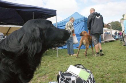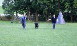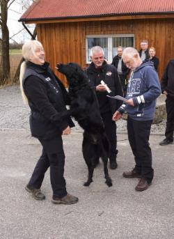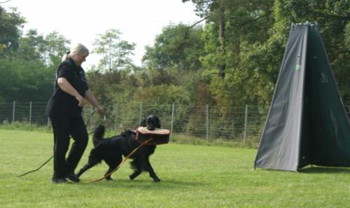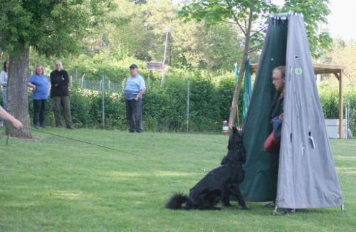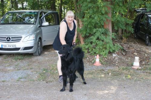 Außer am ersten spitzen Winkel hat Azita wieder eine tolle Suchleistung gezeigt und auch die restlichen Gegenstände wurden super verwiesen, wenn auch LR W. Bittner bemängelte, dass z.T. die "Pfote" darauf lag...naja, der Hovawart hat nun mal lange Haare an den Beinen....und auch an der Brust!