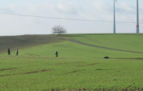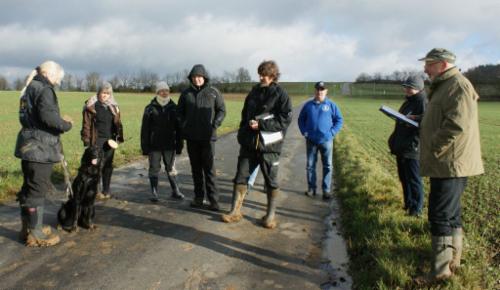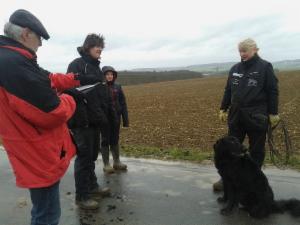 Leider hatte der Wettergott diesmal überhaupt gar kein Einsehen....nach dem es tagelang geregnet hat, gab es in der Nacht vor dem Prüfungstag den ersten Bodenfrost...somit war der Fährtenacker beim Legen noch gefroren. Dank der Sonnenstrahlen verwandelte dieser sich rasch in einen regelrechten Schlammacker.